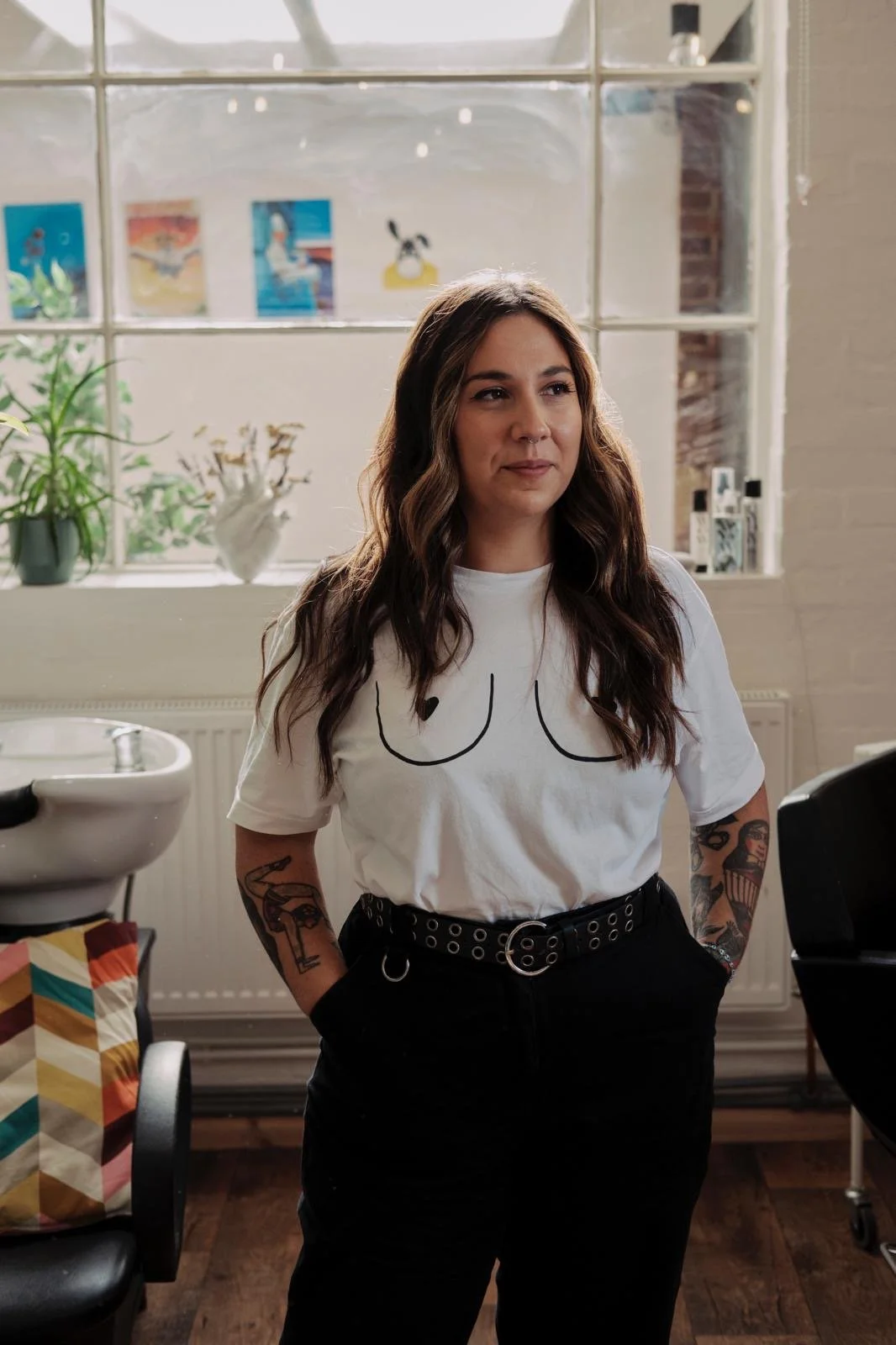 As a hairstylist and barber, she specialises in scissor cuts across all genders and hairstyles; from short shaggy mullets, bouncy blow dries through to precision style bobs and skin fades.